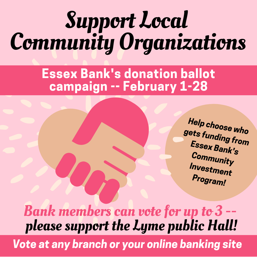 Please consider supporting the Lyme Public Hall and Local History Archives as well as your other favorite organizations by voting! You can vote for up to three organizations, or throw all of your support to just one or two.
